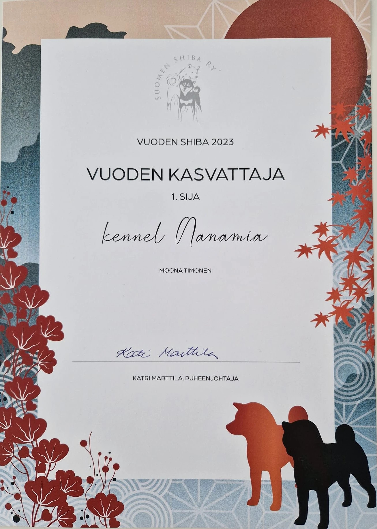 6.10.2024 aamuyöstä Nana synnytti kolme pientä shiban alkua. Kaikki sujui hyvin.